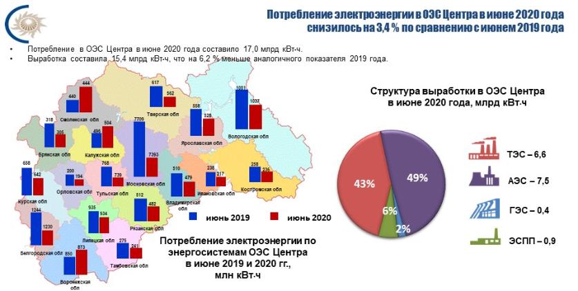 По оперативным данным Филиала АО «СО ЕЭС» «Объединенное диспетчерское управление энергосистемы Центра» (ОДУ Центра), рост потребления в июне 2020 года по сравнению с июнем прошлого года зафиксирован всего в двух субъектах ЦФО.