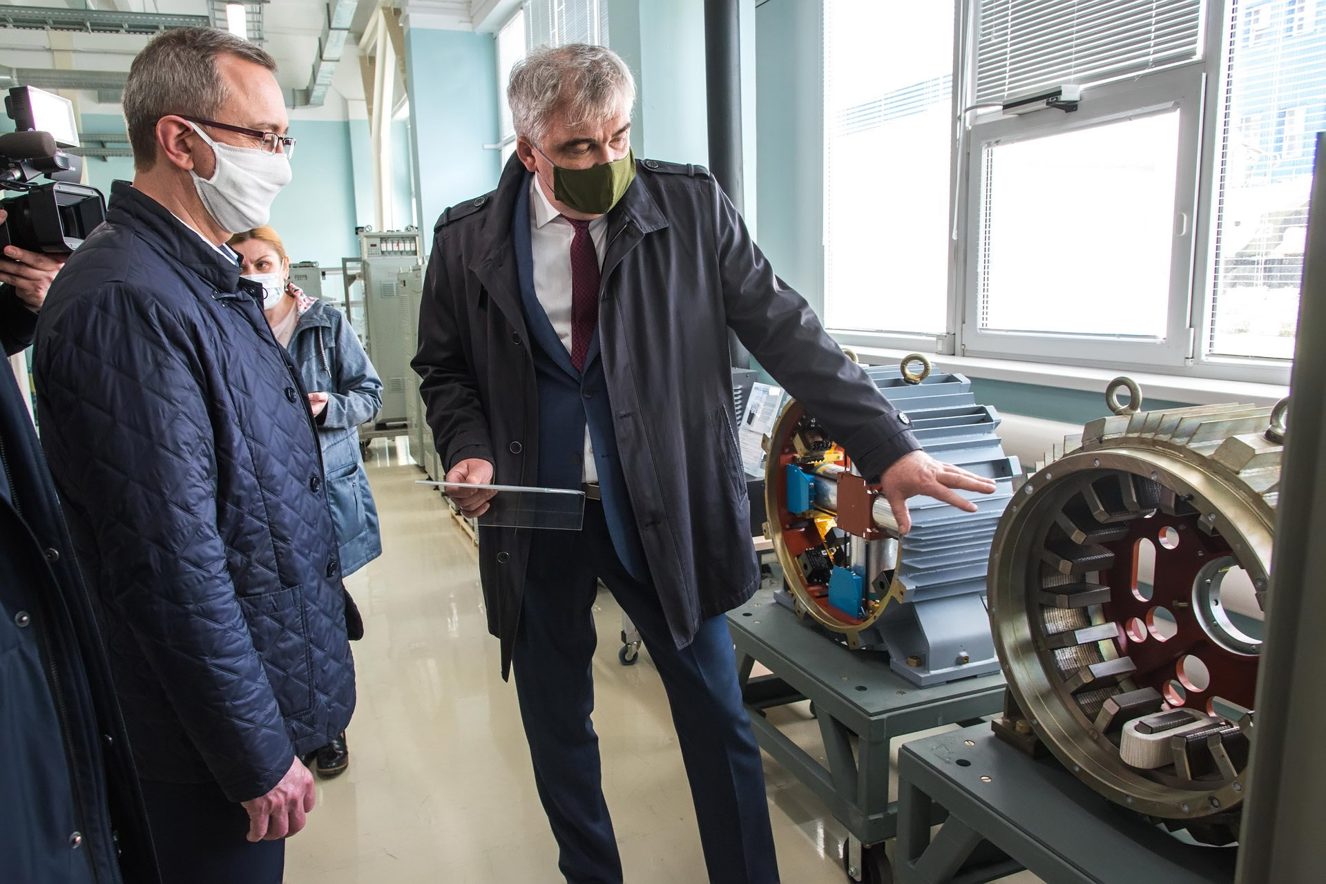 АО «Тайфун» активно осваивает выпуск гражданской продукции. Это приборы и системы вторичного электропитания и силовые электроприводы на основе вентильно-индукторных двигателей. Главе региона продемонстрировали один из опытных образцов и рассказали о планах по его продвижению на внутренний рынок.