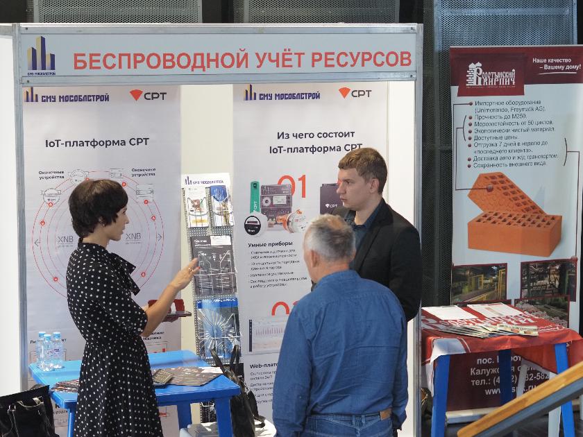 Среди технологий, представленных здесь, заслуживает внимания беспроводной учёт энергоресурсов, применяемый нашими соседями из АО «Мособлстрой». Не случайно этой технологией заинтересовались многие представители калужских строительных компаний.