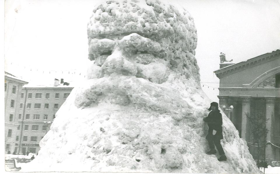 В начале 70-х городская ёлка «переехала» на Театральную площадь. Несколько лет подряд на площади накануне Нового года появлялись ледяные фигуры Деда Мороза и Снегурочки. Калужане старшего поколения наверняка помнят большую ледяную горку, сделанную из головы Деда Мороза, однажды появившуюся здесь перед праздником. Сооружением ледяных скульптур занималось местное отделение художественного фонда, а помогали солдаты местных воинских частей.