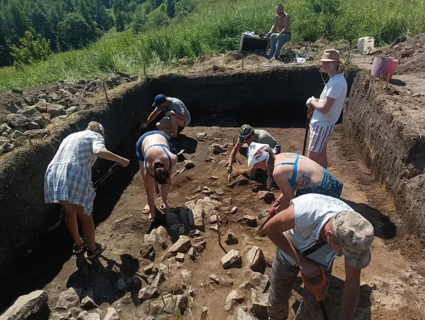 В этом году раскоп был заложен на краю площадки городища с целью изучения остатков его оборонительных сооружений. Удалось обнаружить каменную выкладку, являвшуюся основанием деревянной крепостной стены. Здесь же были обнаружены наконечники стрел, каменные ядра, элементы доспехов. Судя по характеру слоя, когда-то в городе произошел сильный пожар.