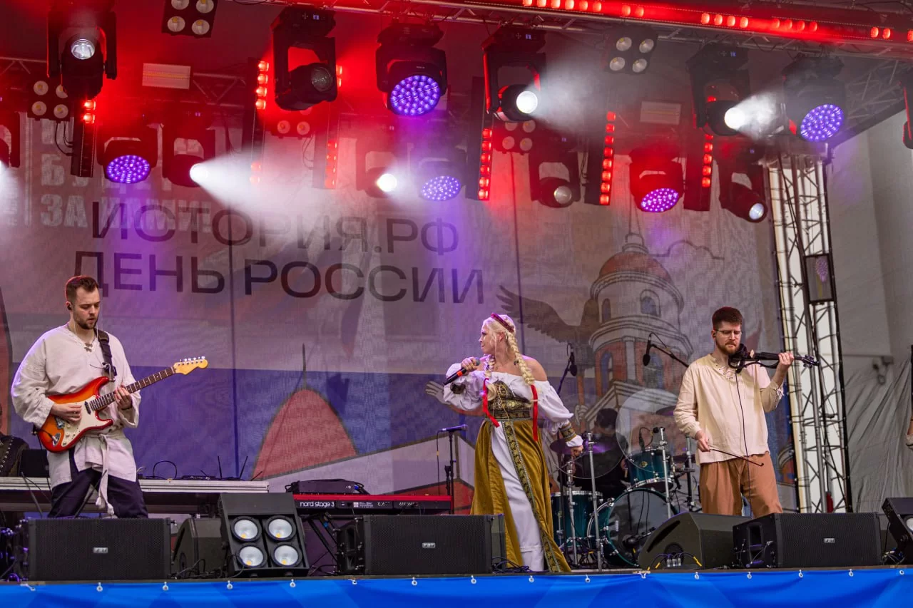 Традиционно основной площадкой празднования Дня России в Калуге становится Театральная площадь. Именно здесь на главной сцене прошёл масштабный концерт, организованный при поддержке министерства просвещения и Российского военно-исторического общества.