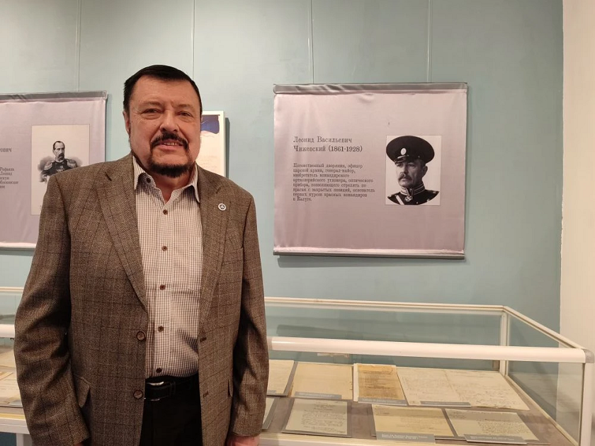 «» «Александр Чижевский вспоминал, что в кабинете отца висели портреты видных русских военачальников, его предки воевали под знаменами Кутузова и Суворова. Военные традиции здесь передавались из поколения в поколение. Мало кто знает, но у этой семьи довольно близкое родство с Нахимовым. Бабушка Александра Чижевского – внучатая племянница Павла Степановича. Прабабушка – Наталья Николаевна, урожденная Нахимова и знаменитый флотоводец – двоюродные сестра и брат. Леонид Васильевич, конечно же, был продолжателем этих традиций», - рассказывает Людмила Морозова, заведующая Домом-музеем.