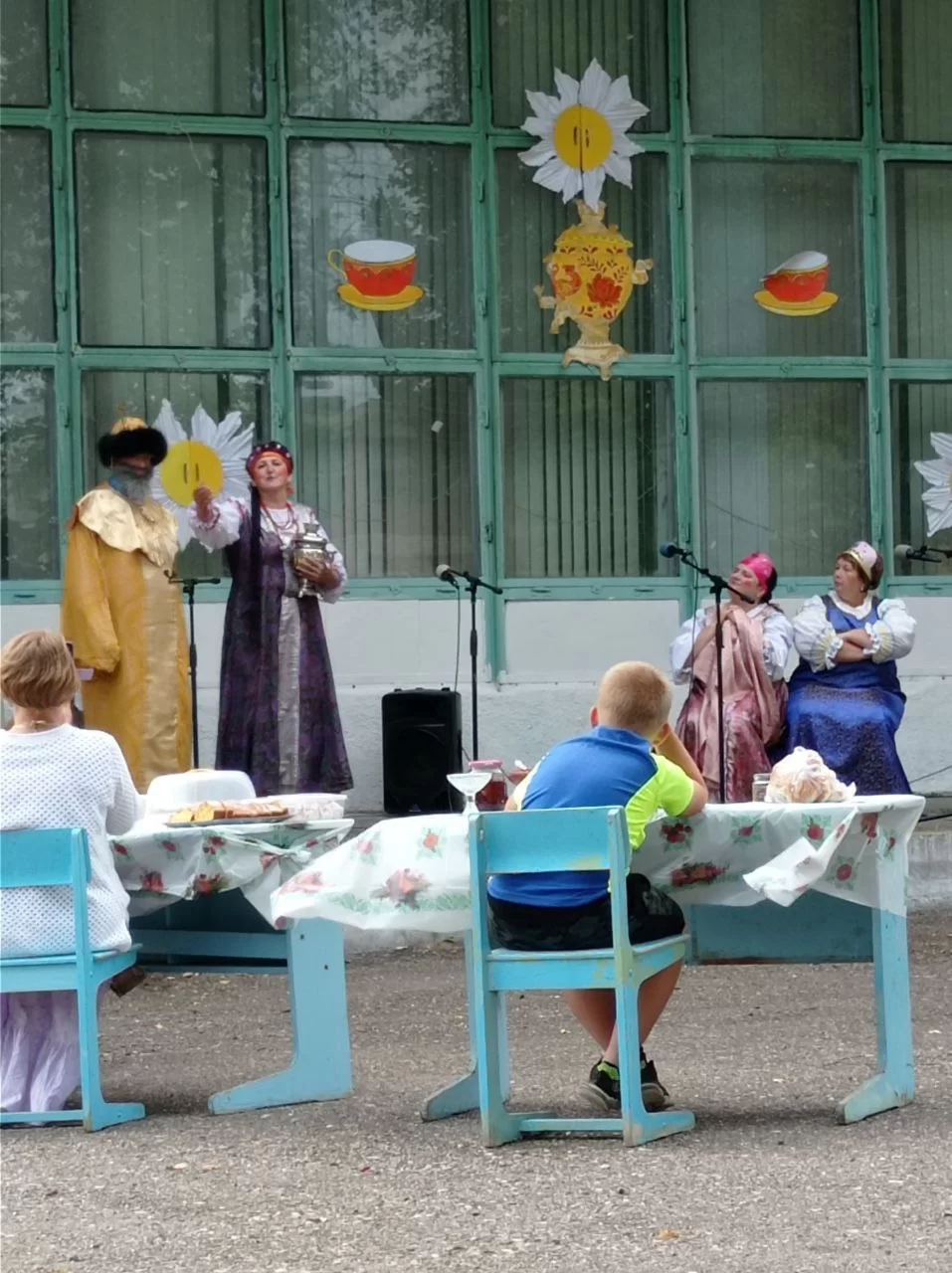 И только потом на столах, установленных прямо на улице перед домом культуры, появились самовары, выпечка (блины, пироги, пирожки, торты) и варенье. Всё приготовленное руками местных хозяюшек: Марии Соколовой, Елены Раменской, Натальи Артамоновой и Натальи Меркуловой.