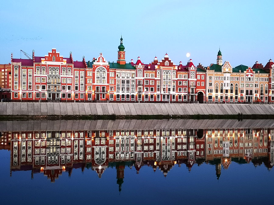 Очень долгое время этот город практически ничем не выделялся среди подобных, заговорили о нем в последние десять лет, когда на улицах и площадях Йошкар-Олы выросли необычные здания – то ли чьи-то грезы о Европе, то ли фантазии архитекторов на классические темы. До того здесь из примечательных зданий был лишь «флакон» - многоэтажка, напоминающая пузырек из-под советского одеколона. В его «крышке» должны были разместиться загс и ресторан. Но, видимо, из-за требований безопасности этого не произошло.Теперь же в столице автономной республики Марий Эл существует набережная Брюгге и набережная Амстердам, площадь святого Марка, простите, Оболенского-Ноготкова, своя Спасская башня. Здесь Театр кукол напоминает замок Нойшванштайн с заставки студии Диснея, установлена реплика московской Царь-пушки и многое другое, сильно стилизованное, но все равно словно переместившееся сюда из других популярных туристических мест Европы. В одной из арок можно увидеть стоящие на набережной статуи голливудской звезды Грейс Келли и ее мужа, князя Монако Ренье III, а при желании обнаружить сходство одной башни с часами с лондонским Биг Беном.