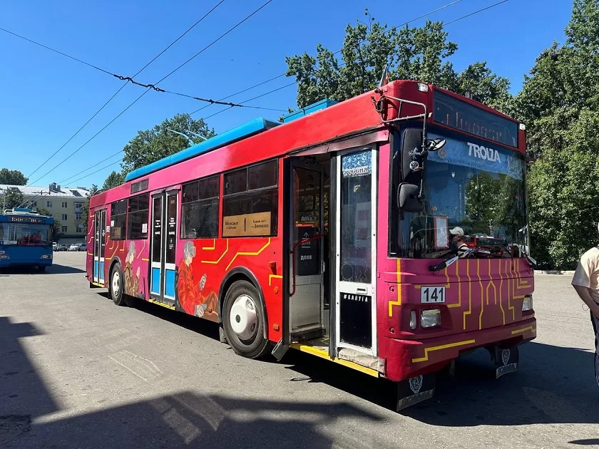 Разрисован калужский троллейбус, который уже вышел на маршрут.