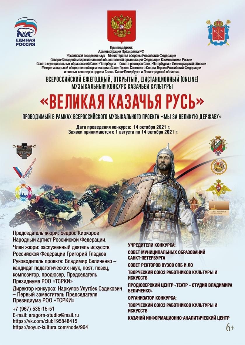 Конкурс проводится для развития и популяризации казачьей культуры, современного искусства и народного художественного творчества, исторически связанного с Русской Православной церковью. Он направлен на развитие интереса к изучению истории Отечества и РПЦ в рамках казачьей культуры. С Положением можно ознакомиться, перейдя по ссылке.
