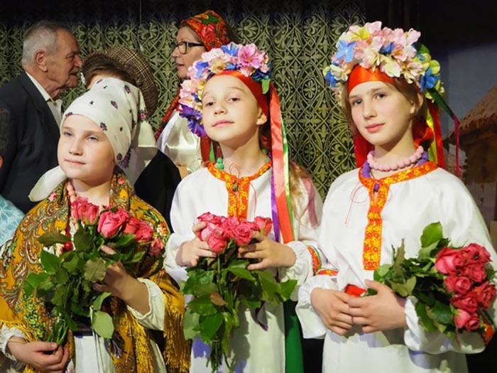 Стоит отметить, что декорации к постановке созданы силами самих артистов, при участии родителей. Это хорошо нарисованная хата, организовано широкое украинское застолье. Кроме того, очень умело выполнены костюмы персонажей.
