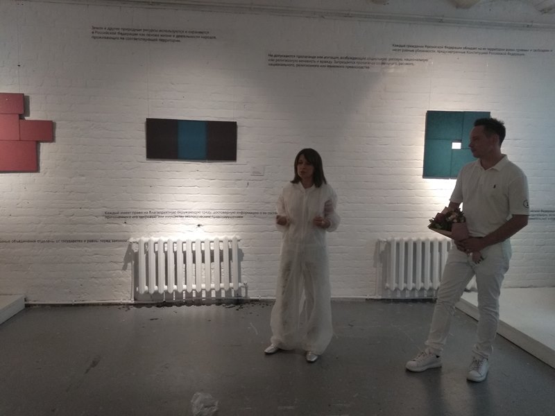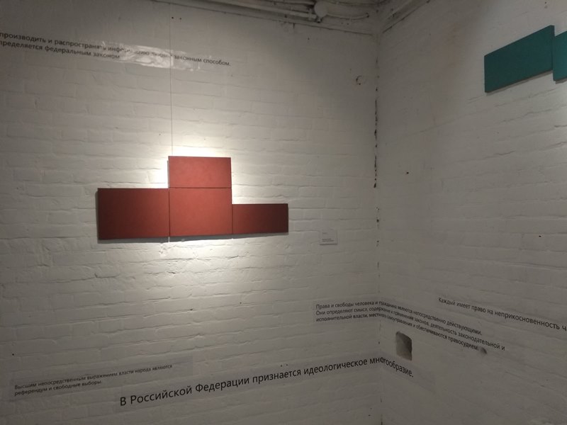 — В проекте Russia Today я отказываюсь от каркаса, размещая живопись на стене, которая и является основанием для нее. Живопись становится независимой от традиционной прямоугольной формы картины, оказываясь как бы частью реальной жизни. Она свободно парит, превращая стену и пространство в свою основу, то есть картину. А холсты-картины перестают нести свою первоначальную функцию – быть основой для изображения. Эта форма визуального контента наилучшим образом соответствует содержанию проекта: как и изображение, вырванное из картинной плоскости, состоящие из фрагментов, лишенных какого бы то ни было содержания, становится просто абстрактным объектом, так и статьи Конституции, лишенные силы закона, становятся просто текстом, произведением литературного искусства, — отмечает автор выставки, рассказывая о своем проекте.