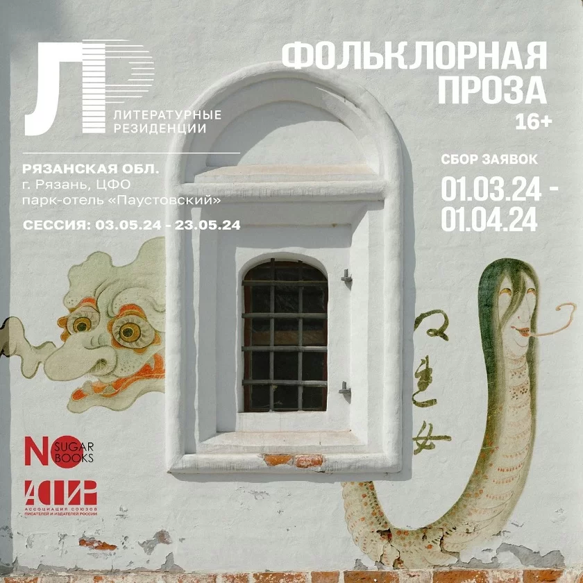 С 03.05 по 23.05 в Рязани (парк-отель «Паустовский») АСПИР совместно с издательством «АСТ» (импринт NoSugar Books) проведет резиденцию для авторов молодежной фольклорной прозы. К рассмотрению принимаются повести и романы для читателей старше 16 лет (фэнтези, хоррор), написанные на основе классических сюжетов, мифов, преданий и легенд (т.н. ретеллинг). Участники конкурса должны представить развернутый синопсис и отрывок произведения (от 10 тыс. знаков до 20 тыс. знаков) до 1 апреля 2024 года. В случае 100% готовности рукопись предоставляется полностью. Прием заявок до 1 апреля 2024 года.