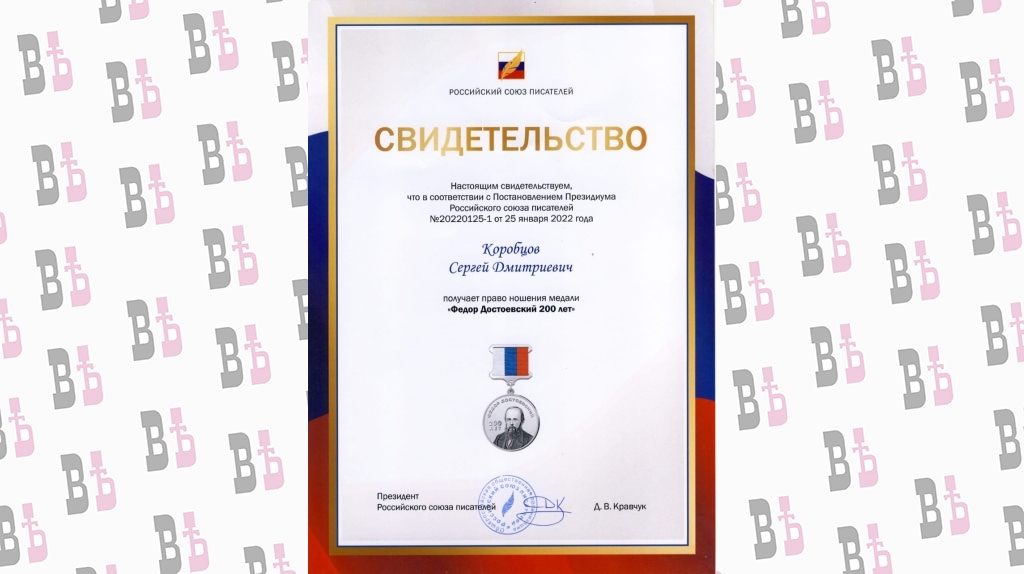 В прошлом году редакционная коллегия «Стихи.портал» номинировала Коробцова на соискание двух литературных премий – «Наследие» и «Поэт года». Кроме того, двадцать его произведений вошли в «Антологию русской поэзии 2021 года» (сборник издается Российским Союзом писателей). Его участники и были награждены медалью «Федор Достоевский. 200 лет».