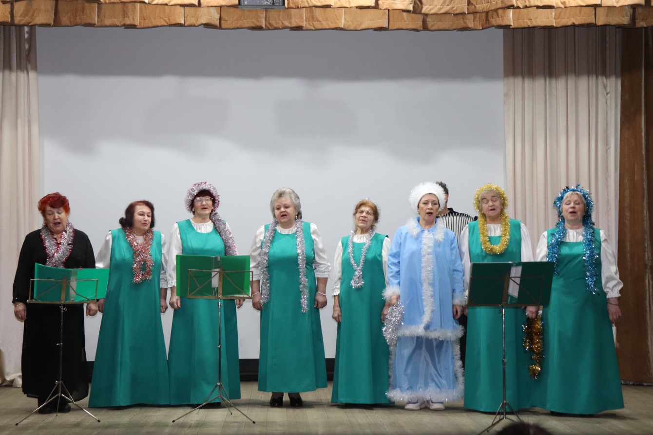 Ансамбль «Вдохновение» исполнил новогодние и зимние песни. «Снежную» тематику подхватили солисты Анна Архипова, Людмила Горбатова, Лариса Куркова, Елена Битиева. Постоянный участник таких встреч, член Калужского бардовского клуба Вячеслав Мещовский (Бобров), порадовал не только песенным талантом, чтением стихотворения собственного сочинения. Три новые песни из своего богатого репертуара исполнил любимец зрителей Юрий Кошевой, а Любовь Чеснова и Елена Иванова сплясали задорные танцы.