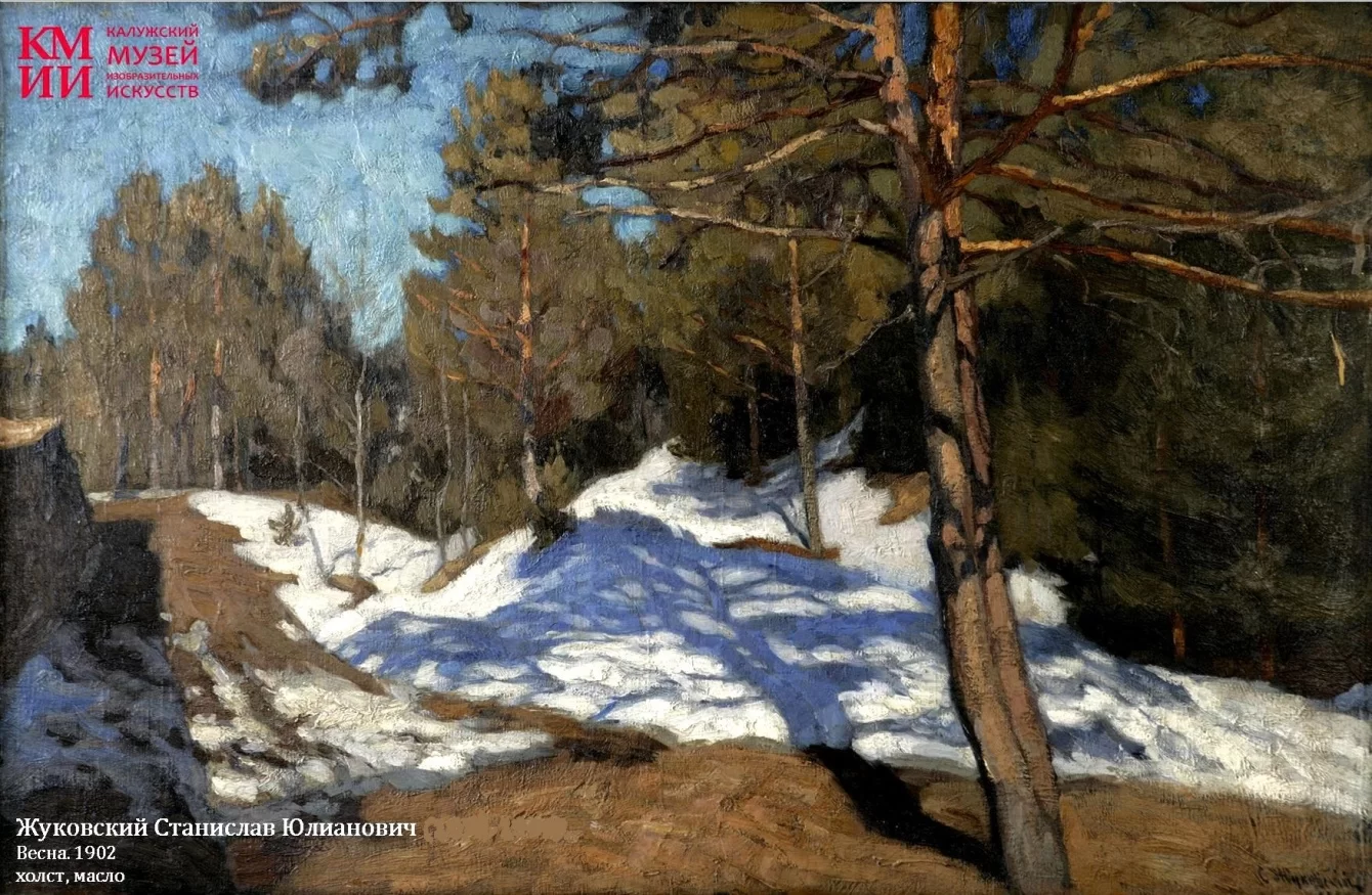 «Картина Жуковского «Весна» в экспозиции находится рядом с произведениями Коровина – художники работали в одном направлении, импрессионистическом. Здесь можно даже проследить общую особенность – написание крупными широкими мазками, яркими цветами. Пейзаж «Весна», несмотря на то что он имеет очень простой сюжет, заставляет остановиться и всмотреться в его глубину. Тени от деревьев здесь выполнены настолько профессионально, что кажется – ты стоишь перед открытым окном, за которым лесная поляна. Весеннее солнце, первые проталины, а по снегу рассыпались тени насыщенного голубого цвета», - говорит заведующая сектором массовых мероприятий музея Екатерина Соловьева.