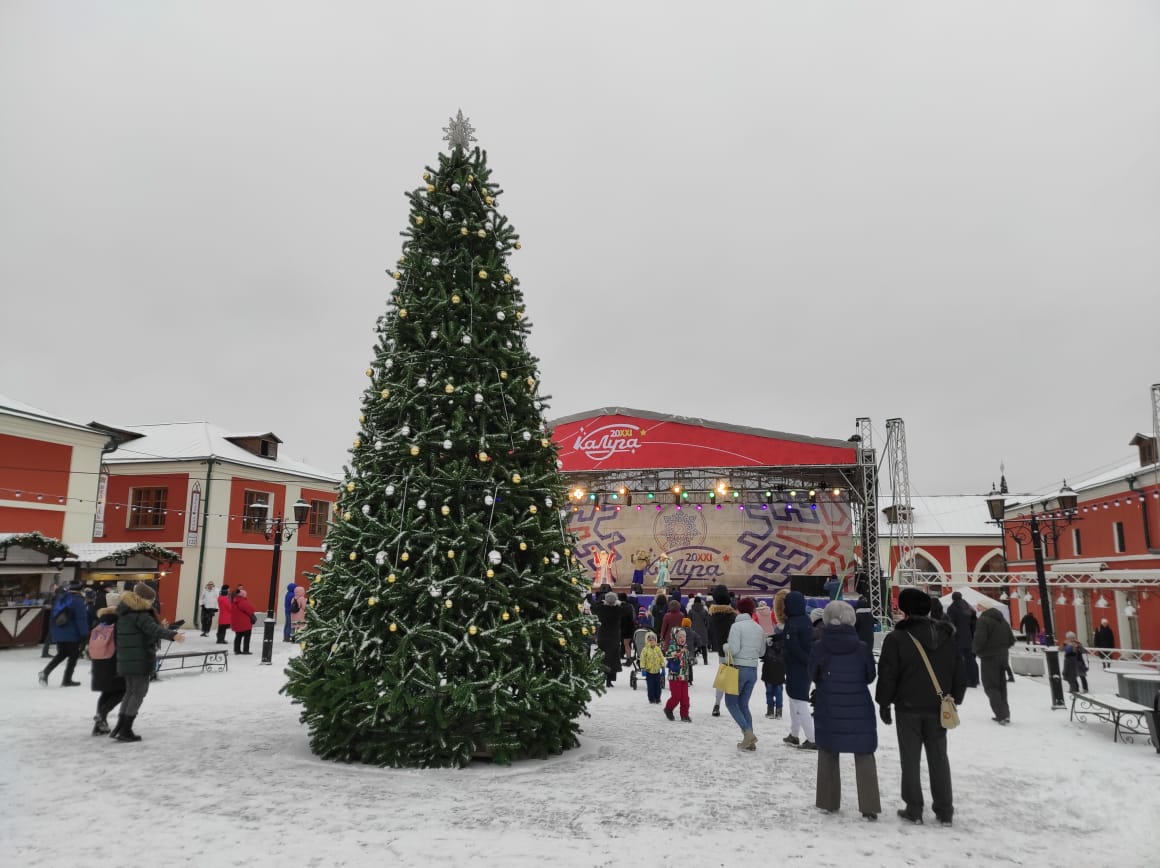Концертная площадка "Гостиный двор" является одной из локаций новогоднего проекта. Она нарядно украшена гирляндами, здесь проводится торговля сувенирной продукцией и изделиями народных мастеров.