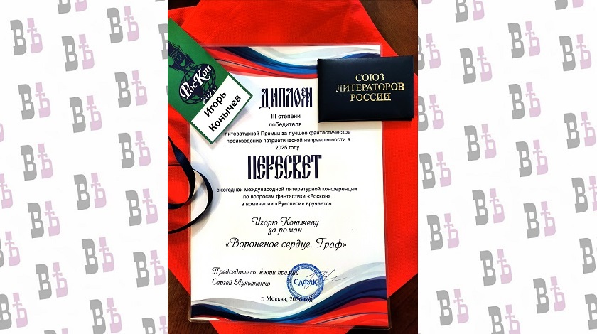 Писатель получил награду в номинации «Рукописи» за роман «Воронёное сердце. Граф». Произведение является первой частью трилогии, выход которой в печать запланирован на ближайшее время, рассказал писатель в своих соцсетях.