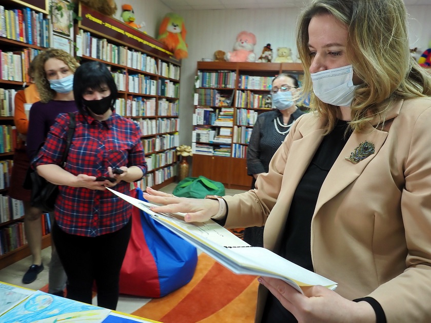 Детский омбудсмен пообщалась с библиотекарями, осмотрела выставку, отметив огромную роль этого учреждения в социализации людей с ограниченными возможностями здоровья, в том числе и детей.