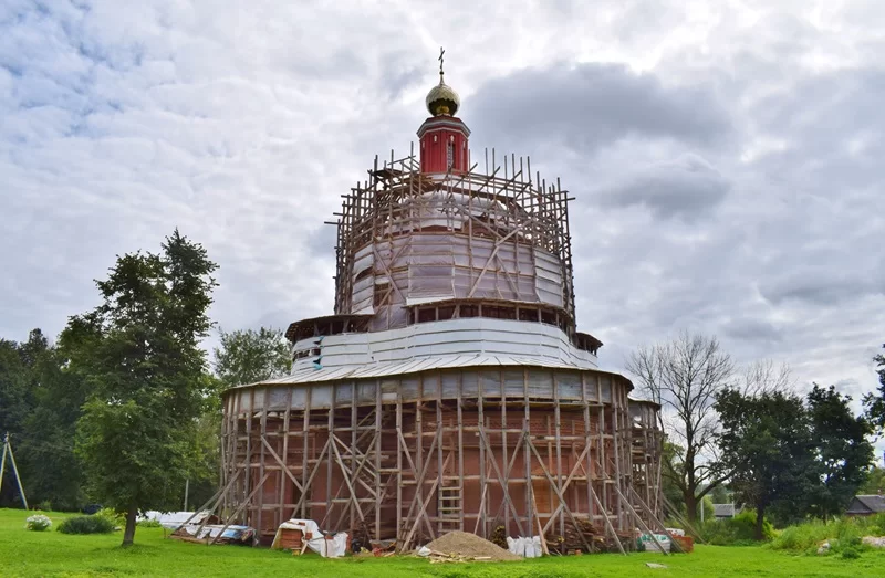 Так близко святые лики не видел ещё никто: они были расположены на многометровой высоте над арками двухэтажного храма-собора. Его возвёл в 1784 году владелец усадьбы Сергей Чаплин по индивидуальному проекту. Храм в 30-е годы закрыли, устроили в нём хозпомещения, а потом забросили. Местные жители могли разглядеть фрески только в пустые проёмы окон. В 2013 году храм Вознесения Господня редкой для глубинки архитектуры начали восстанавливать всем миром.