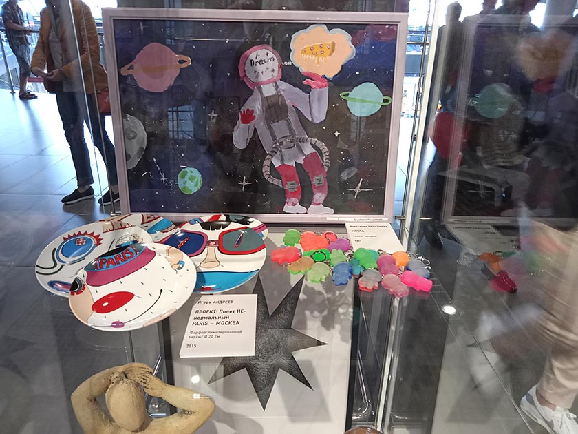 Молодые авторы, устроившие в Музее истории космонавтики выставку «МАКРОКОСМОСМИКРО», рассказали посетителям, как рождаются новые идеи под влиянием научной информации и технических достижений, в том числе космических исследований.