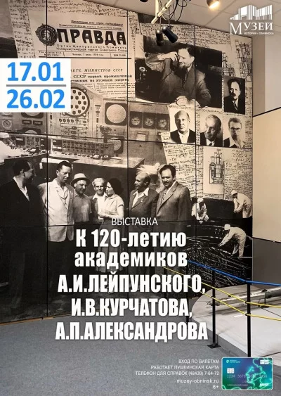 И. В. Курчатов, А. И. Лейпунский и А. П. Александров — были первыми из плеяды блестящих советских физиков, воспитанников школы «папы Иоффе». Судьба этих ученых, составивших цвет советской научной мысли, связана с городом Обнинском. Игорь Курчатов является руководителем всего атомного проекта СССР. Учёный много сил и времени уделял созданию в Обнинске Первой в мире АЭС, на базе которой теперь работает музей атомной энергетики.