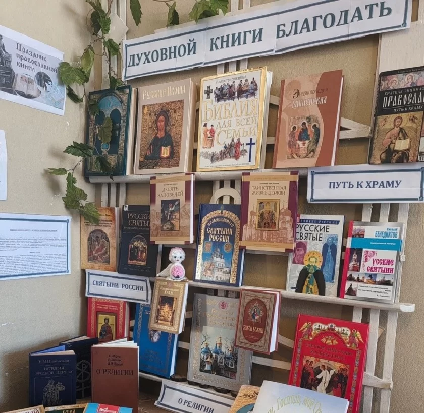 В рамках празднования Дня православной книги в районной детской библиотеке оформлена книжная выставка «Живое слово мудрости духовной». Выставка включает в себя не только православную литературу, но и художественные книги, в которых повести и рассказы современных авторов открывают христианские истины.