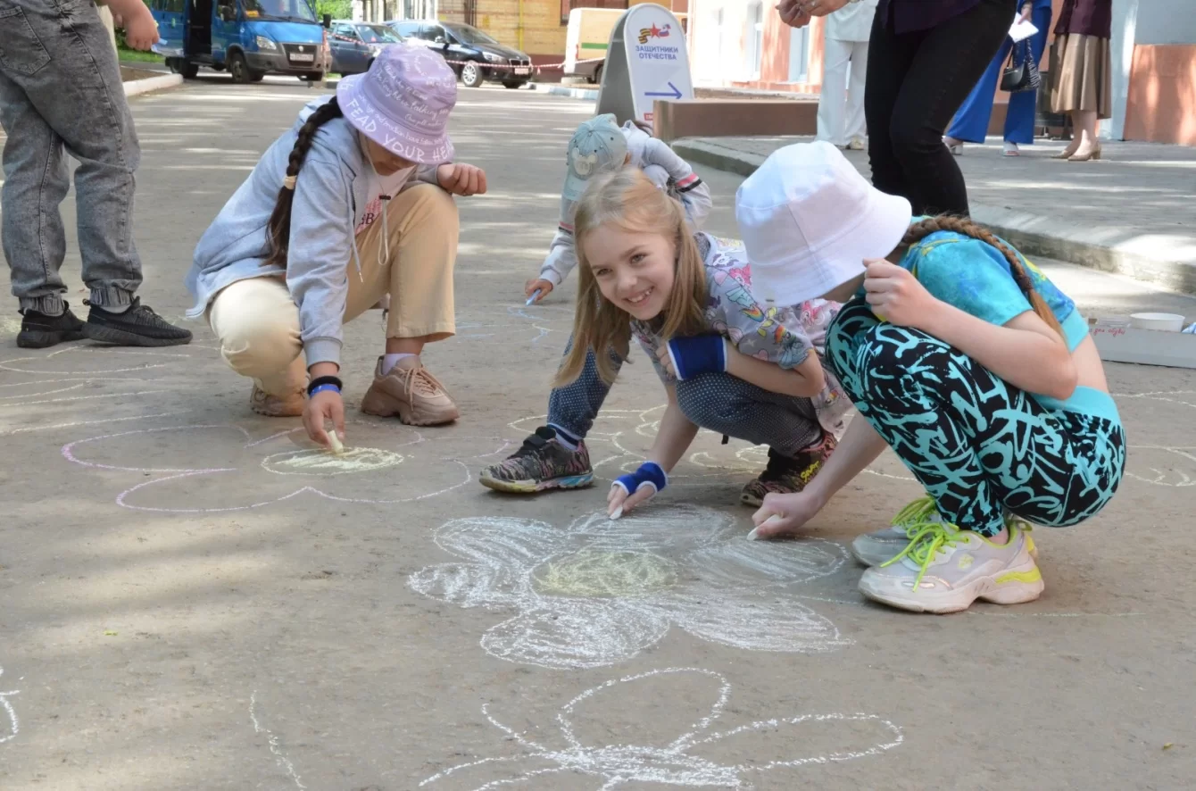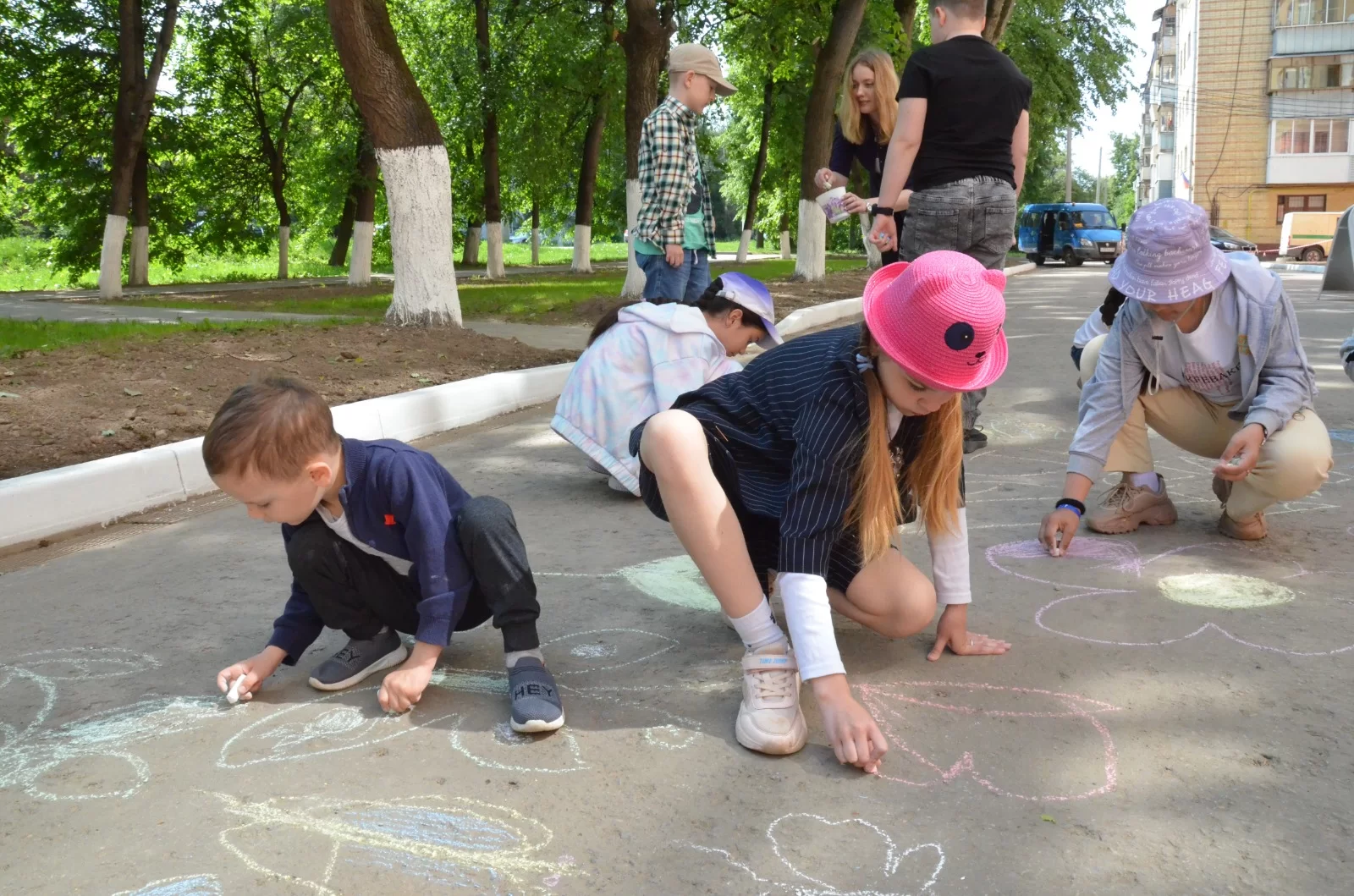 Сначала юные калужане разукрасили мелками асфальт перед входом. Потом поучаствовали в играх, конкурсах и викторинах и получили заслуженные призы.