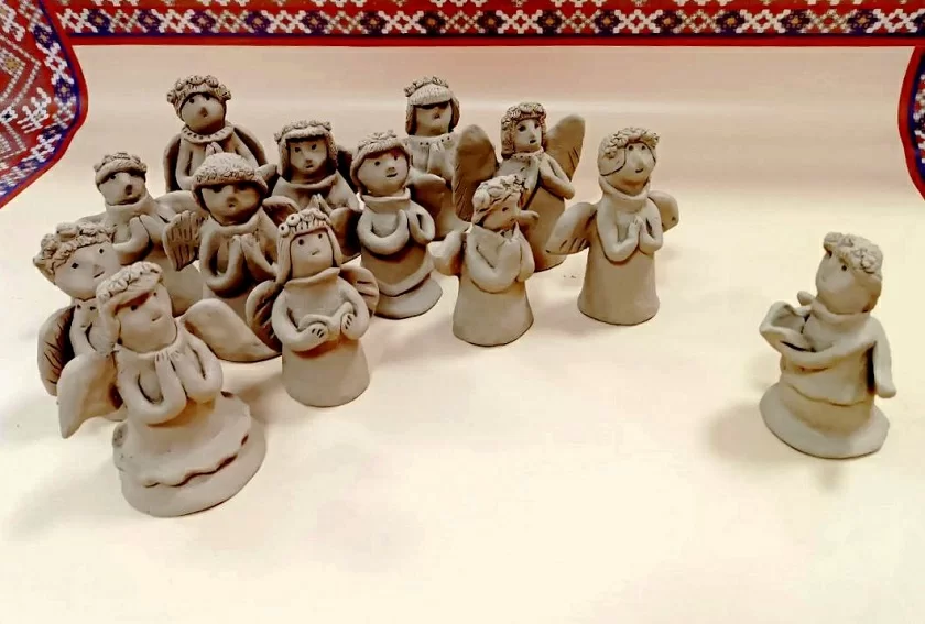 Они рассказали и показали думиничанам, как сделать из глины символических Рождественских ангелов-певцов и дирижёра. Затем участники мастер-класса изготовили фигурки, из которых составили Рождественский хор.