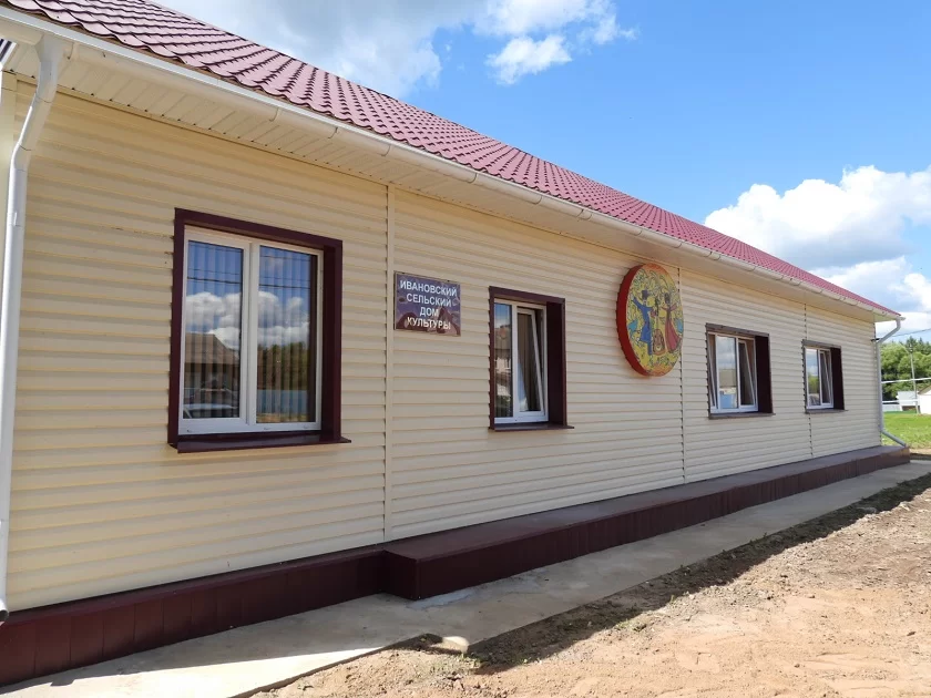 Из неприглядного деревенского дома с печным отоплением Ивановский дом культуры превратился в современное комфортное место для организации досуга сельчан. В процессе ремонта привели в порядок фундамент здания, пол, потолок, утеплили стены, сделали новую кровлю, обшили фасад сайдингом. Печь демонтировали, а вместо нее сделали электрическое отопление.