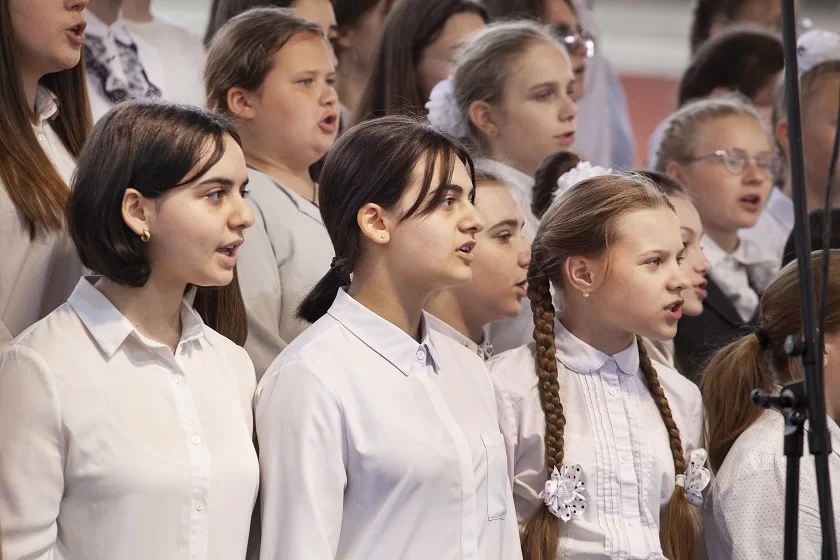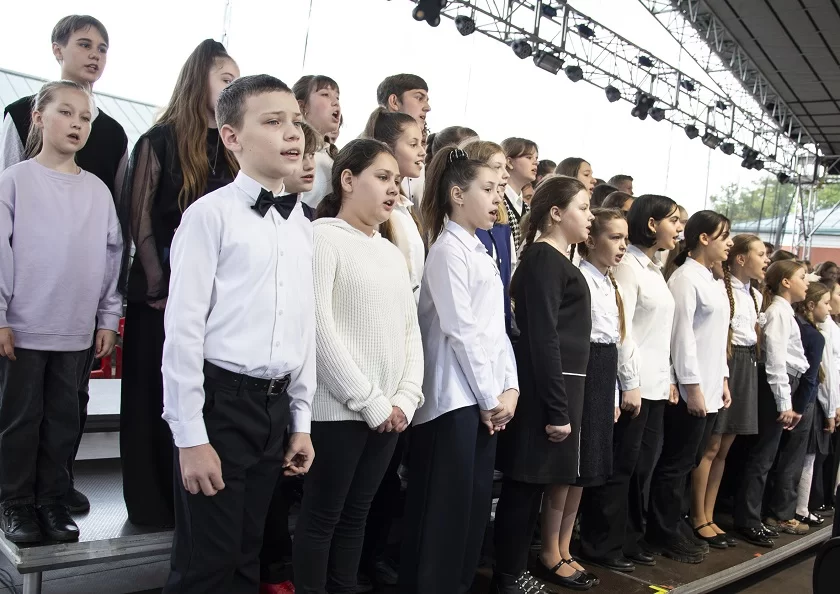 Звучали детские песни, советская песенная классика и произведения фронтовых лет. Кульминацией концерта стала «Песня о Родине», написанная в 1935 году композитором Исааком Дунаевским на стихи Василия Лебедева-Кумача.