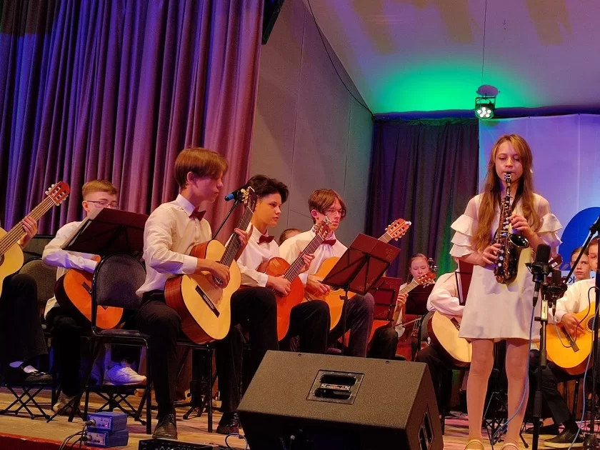 Далее сольные и ансамблевые номера шли нон-стопом. Около четырех часов зал был погружен в атмосферу радости и творчества, а юные таланты – воспитанники школ искусств из Калуги и области – могли ярко заявить о себе. Также гостями фестиваля стали представители других регионов – творческие делегации представляли школы искусств и детские музыкальные школы Москвы, Люберец, Тулы, Брянска, Томска. Выступали солисты, оркестры, классические гитарные ансамбли, ансамбли, включающие другие инструменты, здесь были представлены балалайка, домра, аккордеон. Звучала акустическая и электронная гитара. Ученики выходили к публике вместе со своими преподавателями.