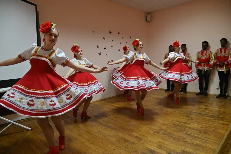 Открыли этнокультурный праздник танцоры Центра хореографического воспитания Viva Dance и студенты из Африки с танцем «Калинка».