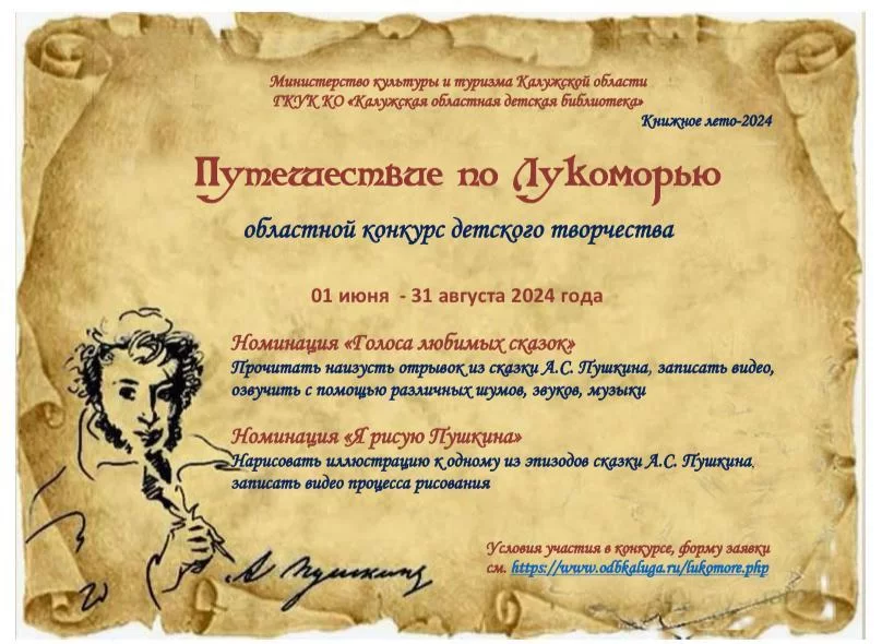 Конкурс проводится в рамках программы летнего чтения «Книжное лето – 2024» в номинациях «Голоса любимых сказок» и «Я рисую Пушкина» с 1 июня по 31 августа.