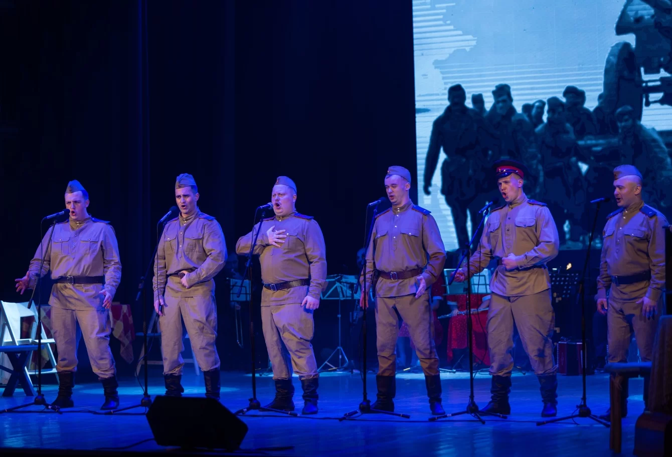 «» «С честью и достоинством мы несем память о своих дедушках. Задача, которая стоит перед нами, – передать молодому поколению, что надо быть верными своей Родине. Впечатления от этого спектакля более чем приятные, ребята – молодцы, выступают, поют великолепно», - сказал участник СВО, инженер-сапер 13-го танкового полка 4-й гвардейской Кантемировской дивизии Евгений Золотов.Финалом этого вечера стала песня «День Победы» – гимн героизму советского народа, которую артисты исполнили вместе с калужанами. Такие мероприятия воспитывают любовь к Родине и чувство гордости за нее.