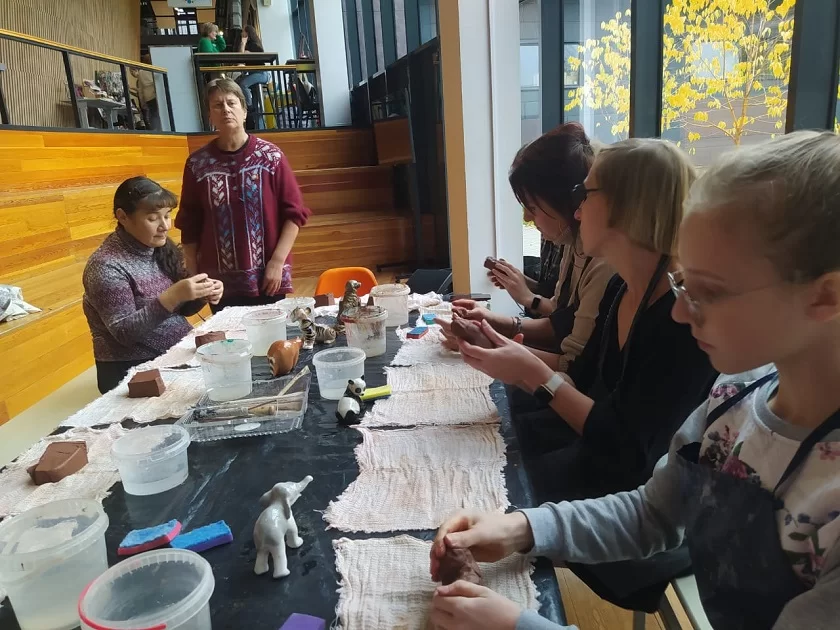 В сегодняшних мастер-классах творчески настроенные калужане смогли попробовать свои силы в создании деревянного 3D-панно под руководством Карины Саитовой и слепить из глины тигра, барсука, собаку или слона в анималистическом уроке Светланы Фарниевой.