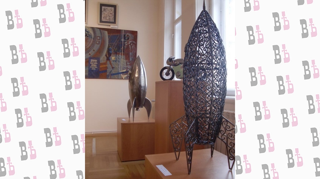 Вообще, яркого и интересного в экспозиции много. Дебютантом конкурса стал художник по металлу Семен Пежар. Семен много лет занимается художественным мотостроением. Оттачивая мастерство, он работает в кузнице, где создает по-настоящему уникальные вещи, начиная от колокольчиков, кованых роз и светильников и заканчивая интерьерными мотоциклами. Кстати, они-то и принесли молодому мастеру профессиональное признание – Семен неоднократно принимал участие в выставках мотоциклетной техники, проходивших в Москве и Петербурге. В музее его кованые ракеты, ставшие новшеством для автора, удачно вписались в экспозицию, где создан целый космический уголок – некоторые художники представили картины и композиции о космосе.