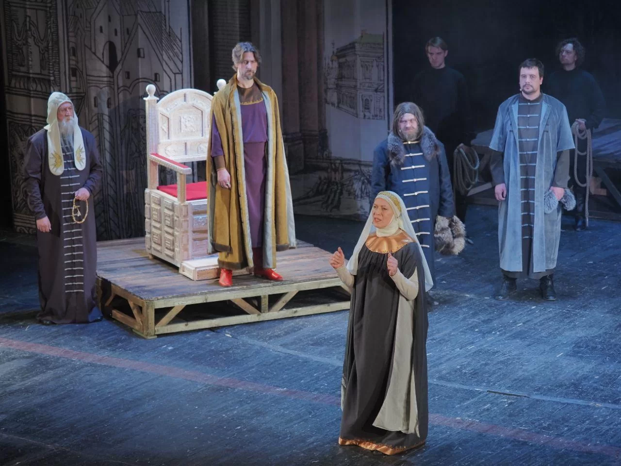 В областном драматическом театре прошла премьера спектакля «Царь и Бог» драматурга Ильи Кузьменкова. Постановка приурочена к 545-летию Великого стояния на реке Угре, рассказал губернатор Калужской области Владислав Шапша в своём телеграм-канале.