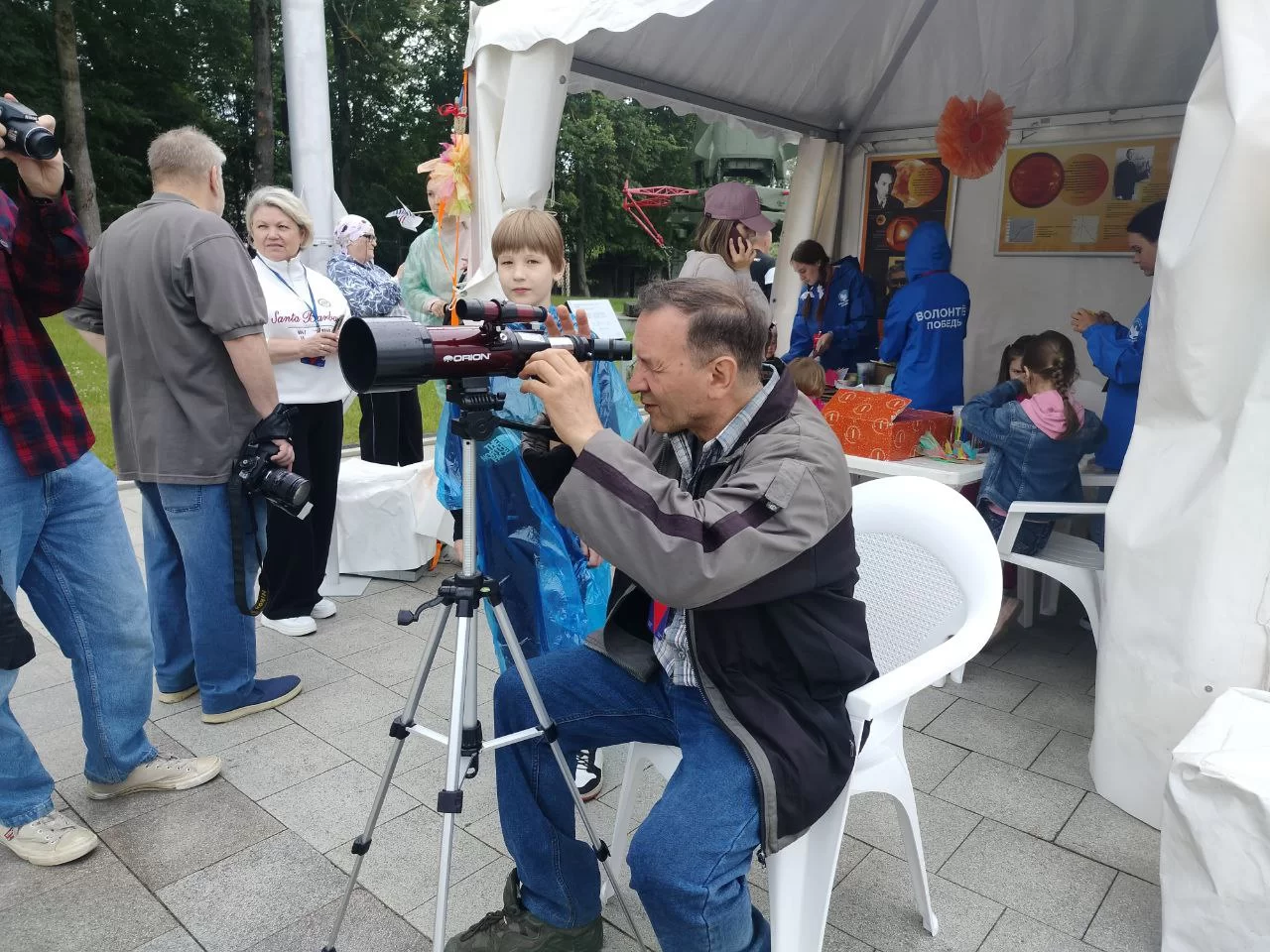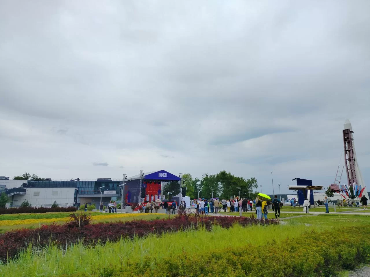 Несмотря на плохую погоду, дождь и ветер уже к 12 часам открытая территория музея была полна людей. Все они хотели насладится атмосферой космоса, которой сегодня царит на территории музея, приблизится к звёздам и окунутся в мир науки.