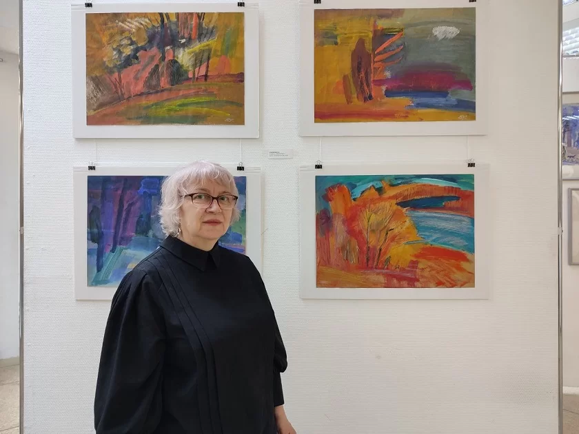 «» «В то же время кто-то из художников может углубиться в более узкую сферу. К примеру, в натюрморт, его фактуру, композиционно-пластические связи. А кто-то пытается обобщить мировые вещи. Здесь мысль, объем, фактура, физическое и духовное, которые вместе соединяются в единую ткань Мироздания. Это сложная, но интересная для осмысления задача», - пояснила Ольга Кузьминова, руководитель Калужского отделения Союза художников России.Ольга Алексеевна – известный в регионе живописец и график, преподаватель КГУ им. К. Э. Циолковского. Она часто выезжает на пленэры – природа дает вдохновение. Ей интересно, к примеру, как в цвете «звучат» времена года. Как отмечает сама художница, тут от натуры можно уйти в символизм.