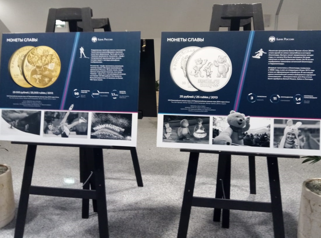 Экспозиция открылась 18 ноября во Дворце спорта «Центральный» в Калуге. На выставке, которая называется «Монеты славы», представлены фотографии монет, посвященных памятным моментам истории российского спорта.