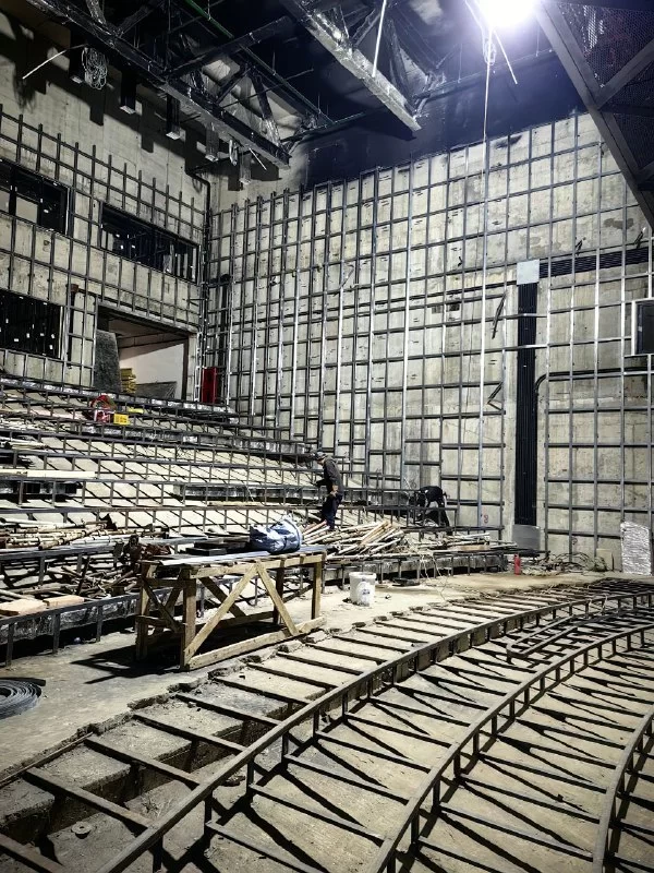 В Калуге продолжается строительство здания ТЮЗа. В большом зале монтируют кресла. Всего там будет 377 посадочных мест.