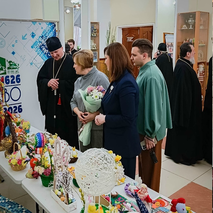 Еще до начала официальной части в фойе РДК развернулась масштабная выставка. Свои работы на пасхальный конкурс представили воспитанники детских садов и школьники. Экспозицию осмотрел епископ Козельский и Людиновский Макарий, которого юные жители округа встретили теплыми пожеланиями.