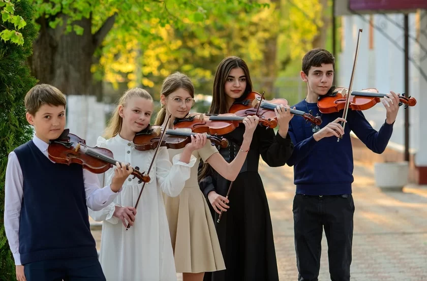 Одним из самых ярких был номер скрипичного ансамбля, выступившего с хореографической группой. Необычайно легко начинающие артисты исполнили композицию «Короли ночной Вероны» из мюзикла «Ромео и Джульетта», что, безусловно, порадовало зрителей.