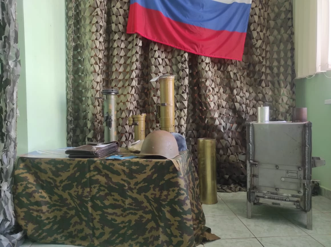 Идея организовать в Медыни постоянную тематическую выставку принадлежит главе районной администрации Николаю Козлову. Жители района участвуют в наполнении гумконвоев для фронта, плетут масксети, делают окопные свечи и стараются всесторонне помочь нашим воинам. Такая экспозиция является логическим продолжением работы Медынского района с участниками СВО.