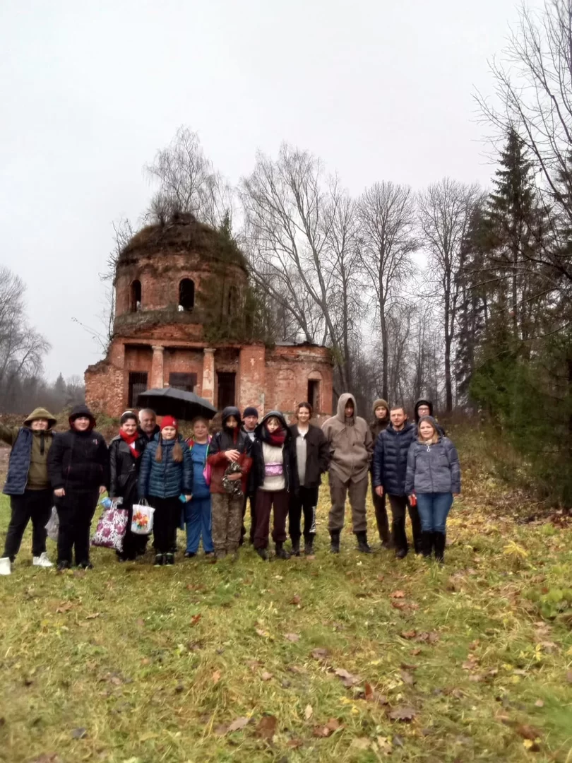 Подростки из центра патриотического воспитания «Союз народов» поучаствовали в восстановлении храма в деревне Грибово.