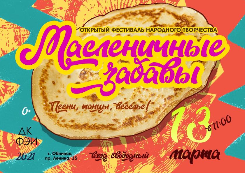 В 11.30 14 марта на городской детской площадке на проспекте Маркса начнется народное гулянье «Гуляй, веселись народ – Масленица у ворот!» и фестиваль ГТО. Гостей ждут игры, конкурсы, забавы, масленичные потехи, хороводы, а также аттракцион «Ледяной столб» и проведение обряда «Сжигание чучела». Обнинцы смогут посостязаться в перетягивании каната, армреслинге, сдать нормативы ГТО. На празднике будут подведены итоги конкурса на лучшую масленичную куклу «Сударыня Масленица 2021». Творческие коллективы города покажут свои номера в концертно-развлекательной программе, а любители селфи смогут сделать снимки в тематической фотозоне.