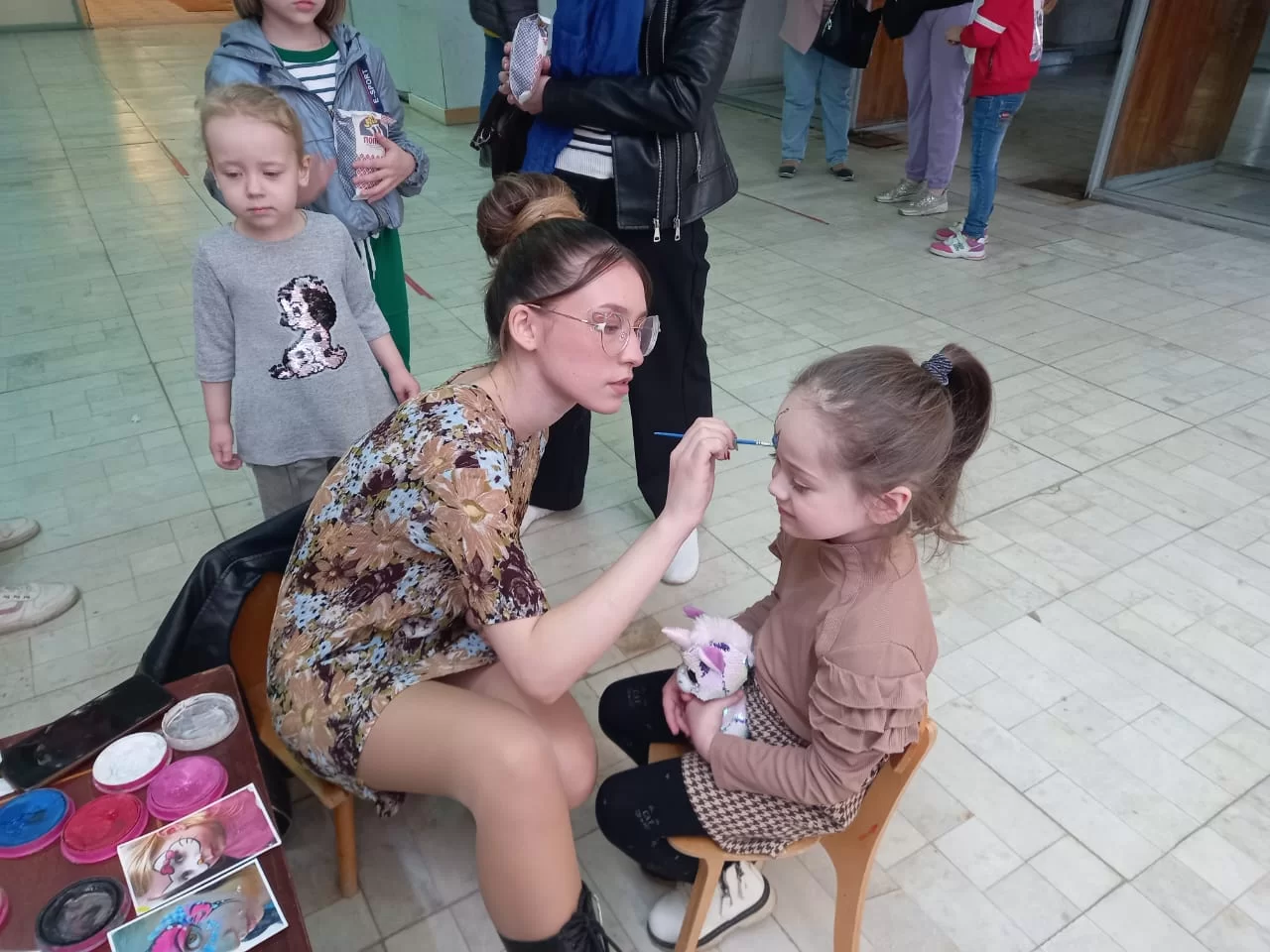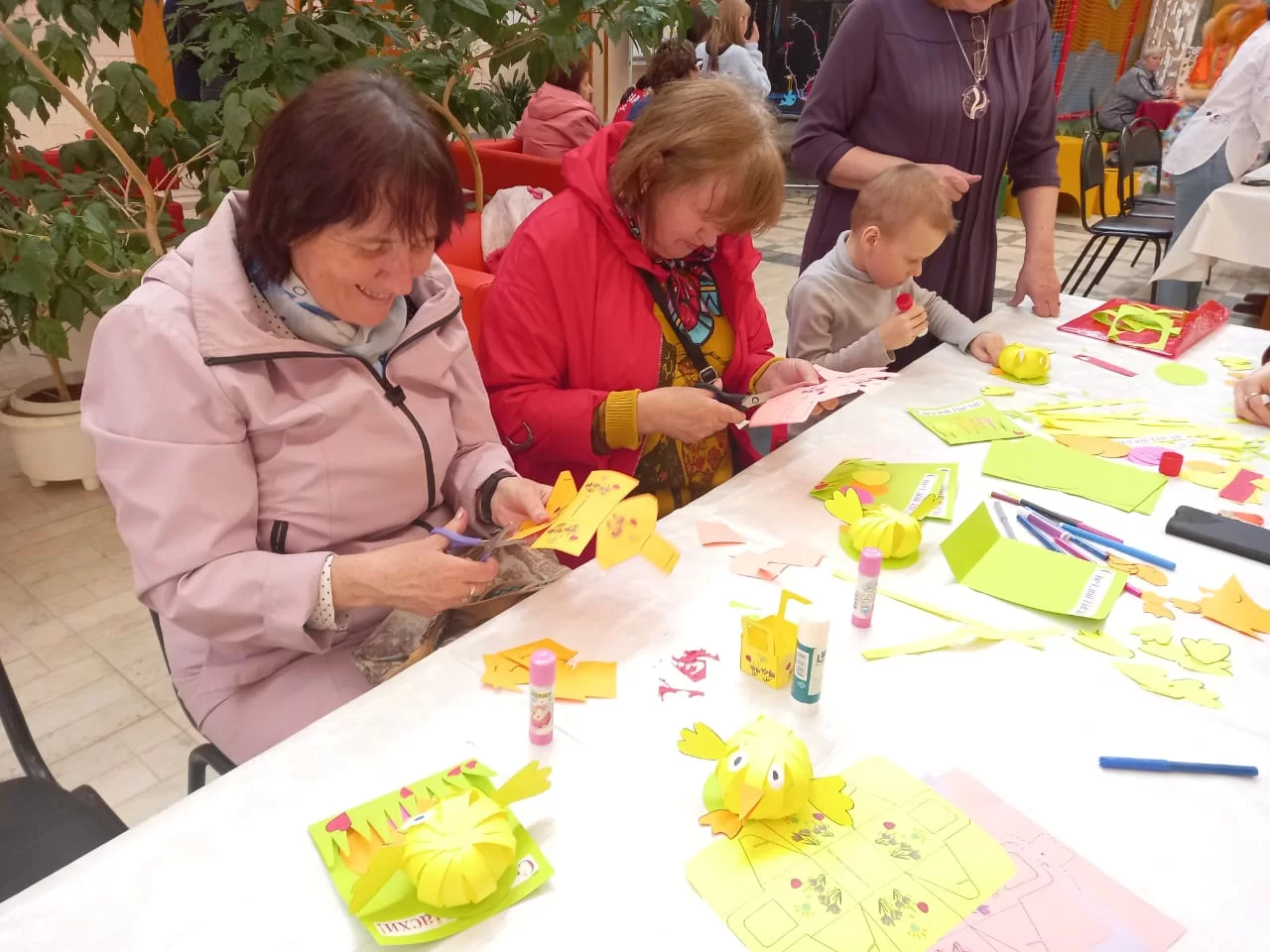 В фойе культурно-досугового центра «Прометей» развернулись выставочные экспозиции «Птичий хоровод» и «Пасхальное яйцо». За каждый экспонат можно было проголосовать в соответствующем конкурсе. Работали аттракционы для детей и целый ряд мастер-классов по изготовлению сувениров. Все желающие могли нанести на лицо аквагрим. Эта забава пользовалась огромным успехом у детворы. А главным событием праздника стал спектакль «Пасхальные приключения Красной Шапочки» по мотивам известной сказки Шарля Перро.