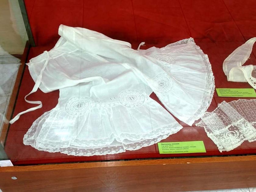 На протяжении уже многих веков Кружева являются неотъемлемой частью украшения костюма, причём не только женского, но и детского и мужского. Собранная сотрудниками музея коллекция довольно интересная и разнообразная по составу кружев: это края и прошва одежды, постельного белья, кружевные косынки, выполненные как вручную способом плетения на коклюшках или вязаные крючком и спицами, так и на машинке.
