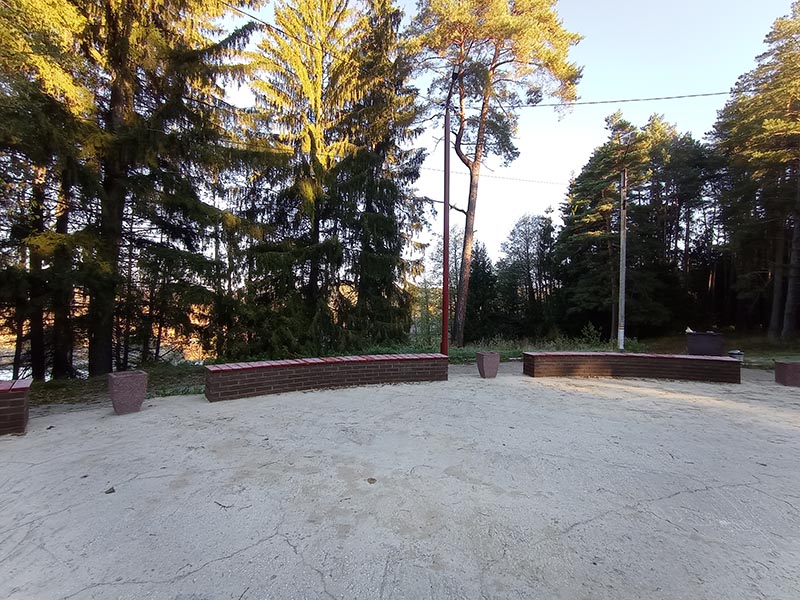 На сцене под козырьком сняли деревянное напольное покрытие, положили тротуарную плитку, облицевали кирпичом. Вокруг площадки установили антивандальные лавочки с бетонным основанием, урны и цветники. Уже стоявшие световые опоры оставили, но установили на них новые светодиодные энергосберегающие светильники. В целом, получился красивый дизайнерский объект.
