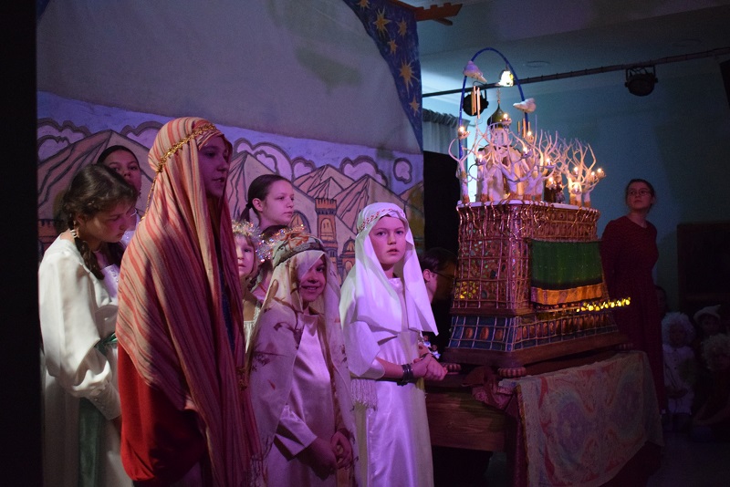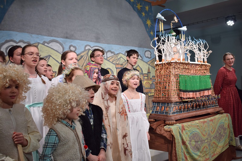 О духовном смысле праздника рассказал детям клирик Петропавловского собора иерей Пётр Гвоздев. Подготовили вертепное действо «Про царя Ирода и Рождество» воскресная школа и детско-юношеский хор при соборе святых апостолов Петра и Павла под руководством матушки Екатерины Гвоздевой.