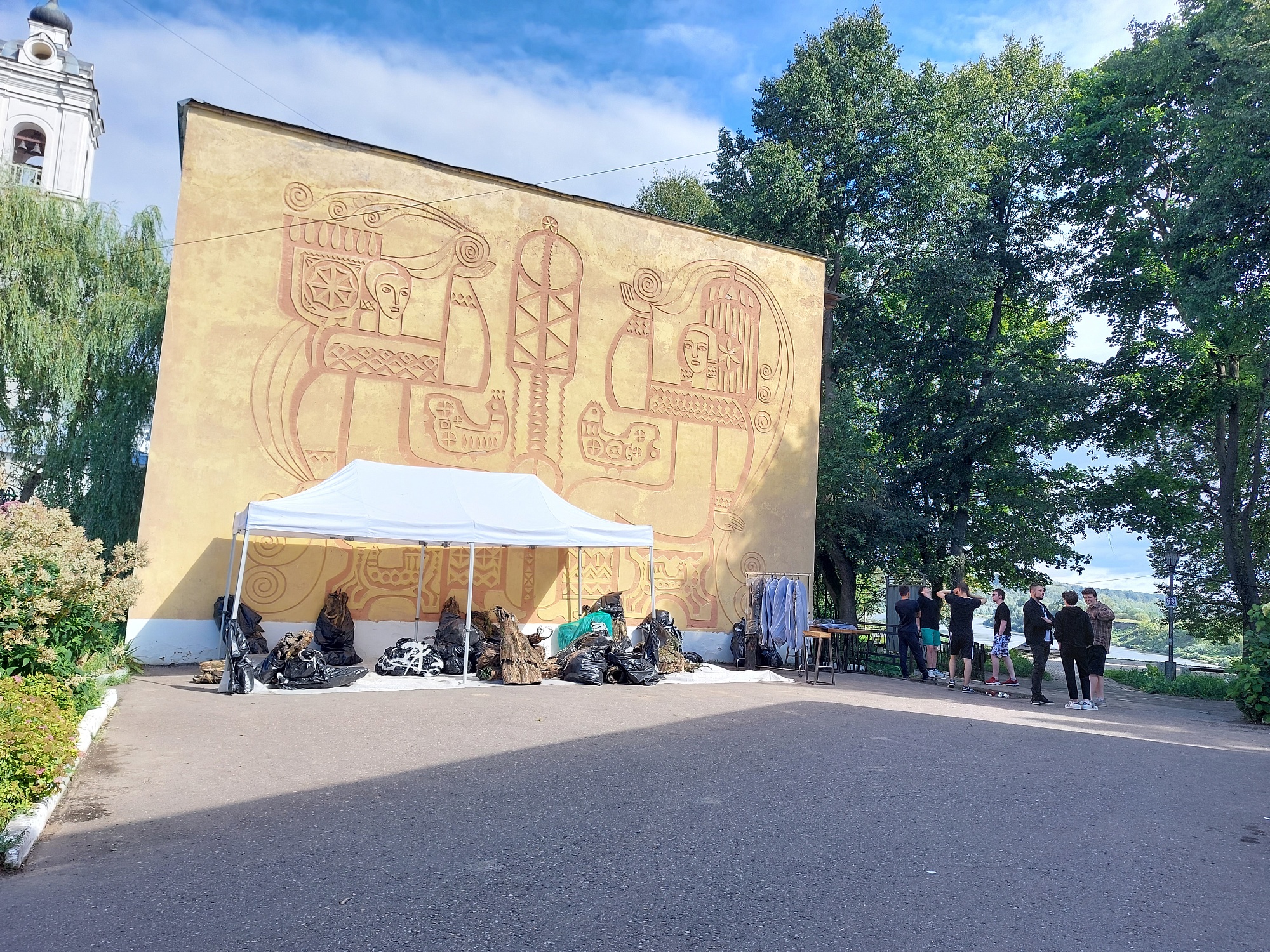 Также сегодня ожидается «митинг» возле памятника Ленину. В съемках будет задействована и стена Тарусской картинной галереи и рисунком. Массовку набирали из жителей Тарусского района.