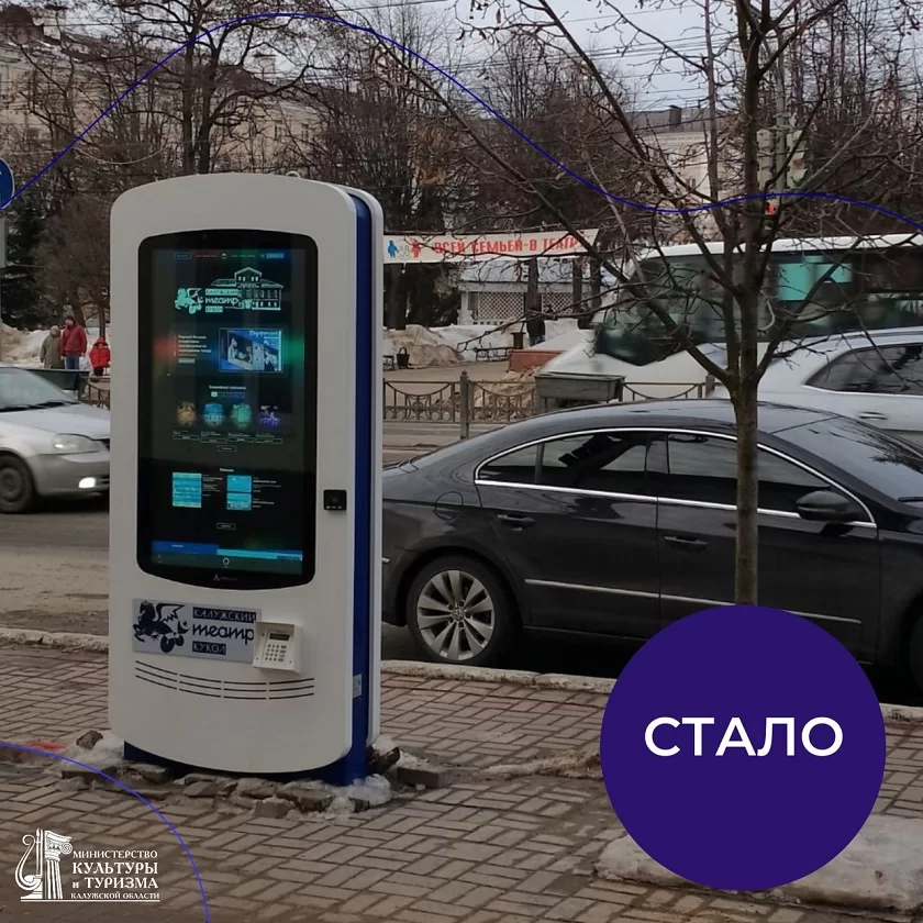 В нем отмечается, что сейчас терминал работает в тестовом режиме, но уже показывает сайт театра и предоставляет информацию о спектаклях.